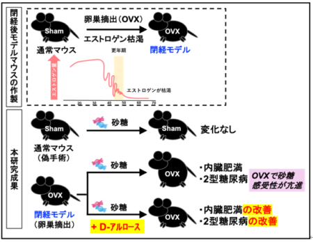 近年、腸ホルモンGLP-1(グルカゴン様ペプチド-1)を基盤とした製剤が、新たな抗肥満薬・抗糖尿病薬として注目されています。一方、食品成分である希少糖のD-アルロースが、甘味を有してゼロカロリーであるにもかかわらず、GLP-1分泌促進作用を有します。しかし、D-アルロースの閉経後の有用性については検証されていませんでした。